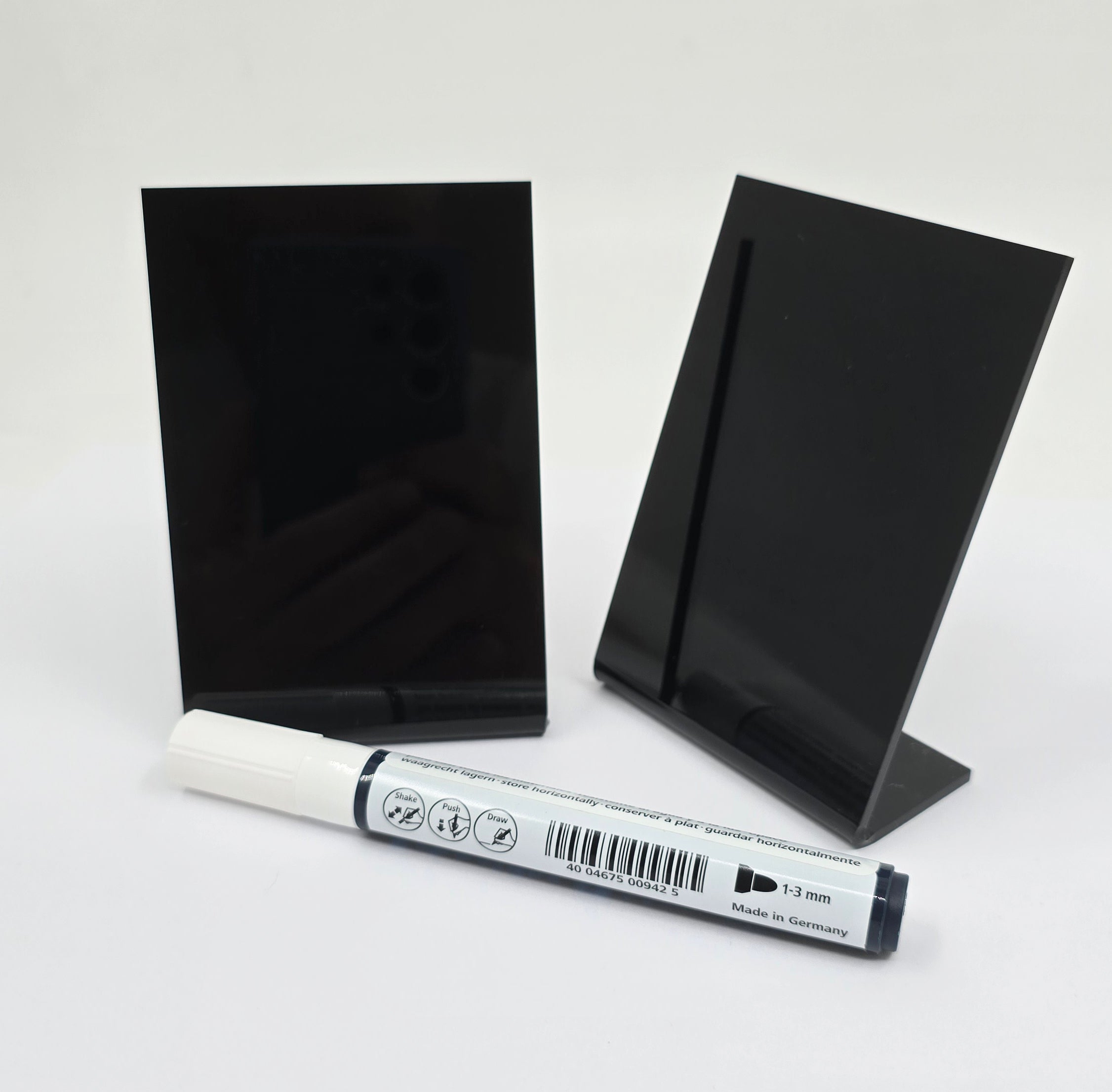 The smooth black surface is writeable and erasable, compatible with chalk or paint markers (included), making it perfect for daily updates.